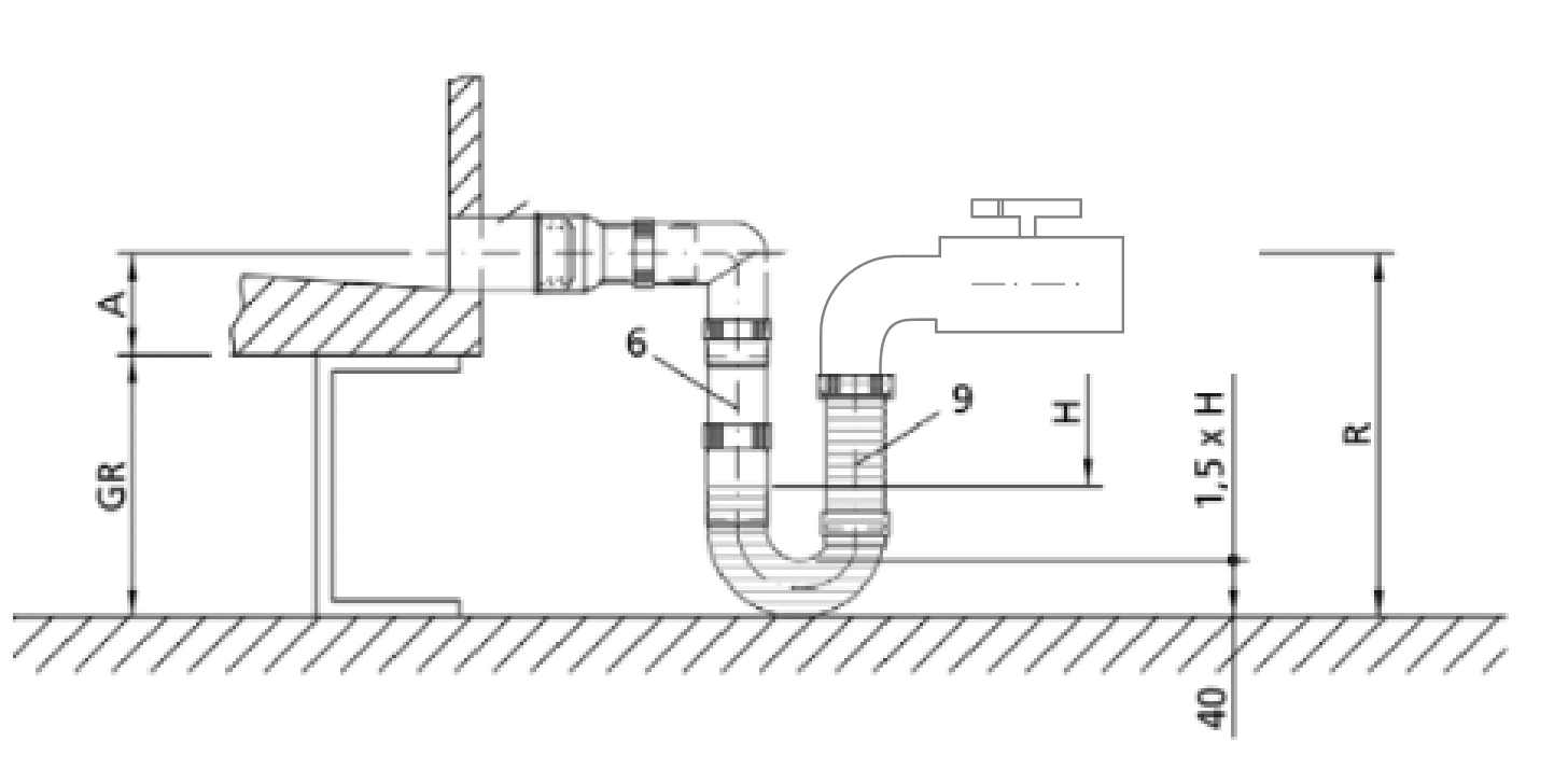 - The siphon must always drain freely (do not connect directly and continuously to the wastewater system).